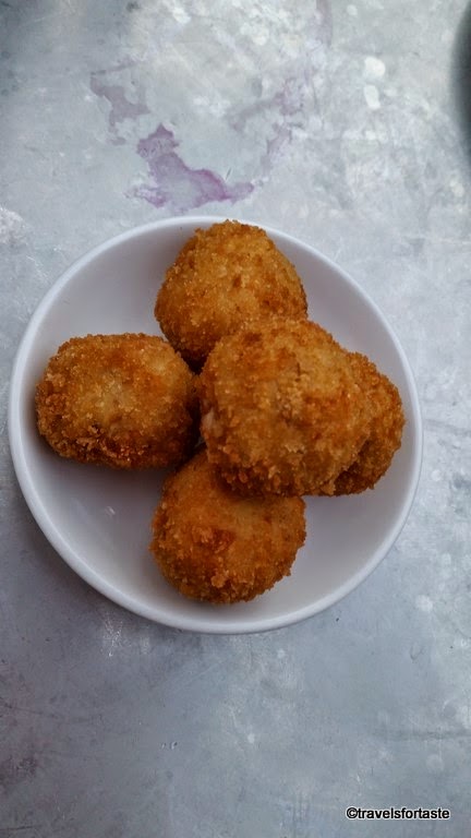 To ensure that we sleep well at night, we were bombared with Croquetas de jamón or deep-fired Iberico ham croquettes. Sink your teeth into one and you will know what I am talking about. This is one carb laden, artery clogging, bomb of gooey goodness that I will gladly pop into my mouth without abandon!